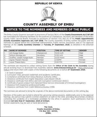 NOTICE TO THE NOMINEES AND MEMBERS OF THE PUBLIC Public Notice Public Participation September 2, 2025September 2, 2025 Victor Njue480
