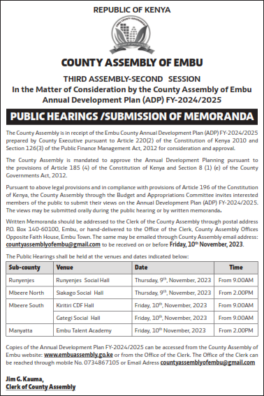 Continue ReadingCounty Assembly of Embu
